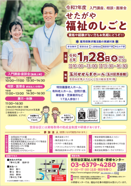 1月28日(水) せたがや 福祉のしごと 入門講座、相談・面接会